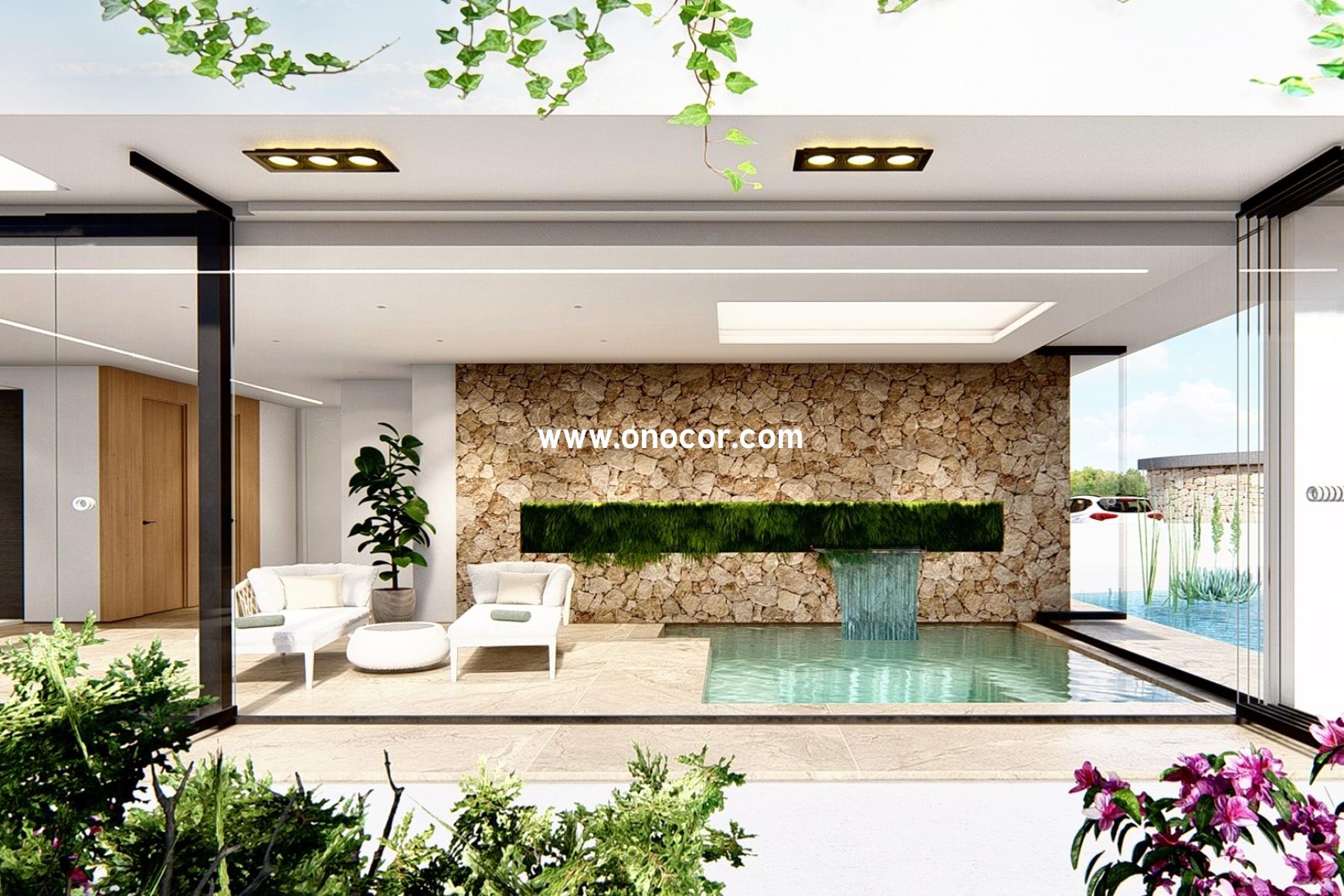 AREAbeach III El Raso is a new private residential development of 2 and 3 bedroom apartments designed in a minimalist style with high quality standards. There are five floors: ground floor, first, second, third and penthouse. The ground floor has a garden, the first, second and third floors have a large terrace and the penthouse has a large solarium. The solarium faces the salt lake, so you can enjoy the view and the fresh air from the terrace.