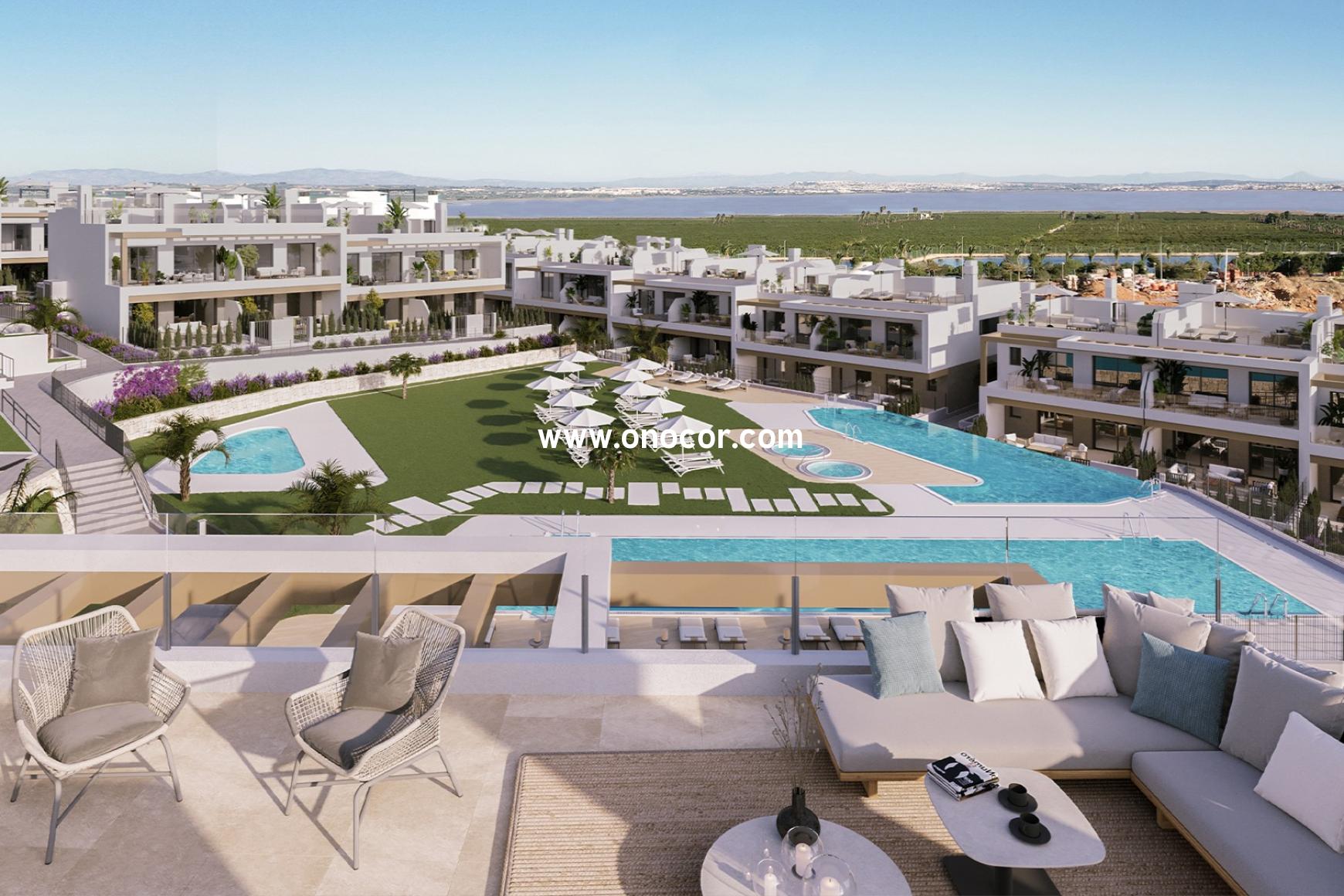 Coronella Living by TM is situated in a quiet location on the outskirts of Torrevieja, with views over the Laguna Rosa and the sea, just 5 km from the sandy beach and promenade – with excellent access to shops, restaurants and renowned golf courses in the area.