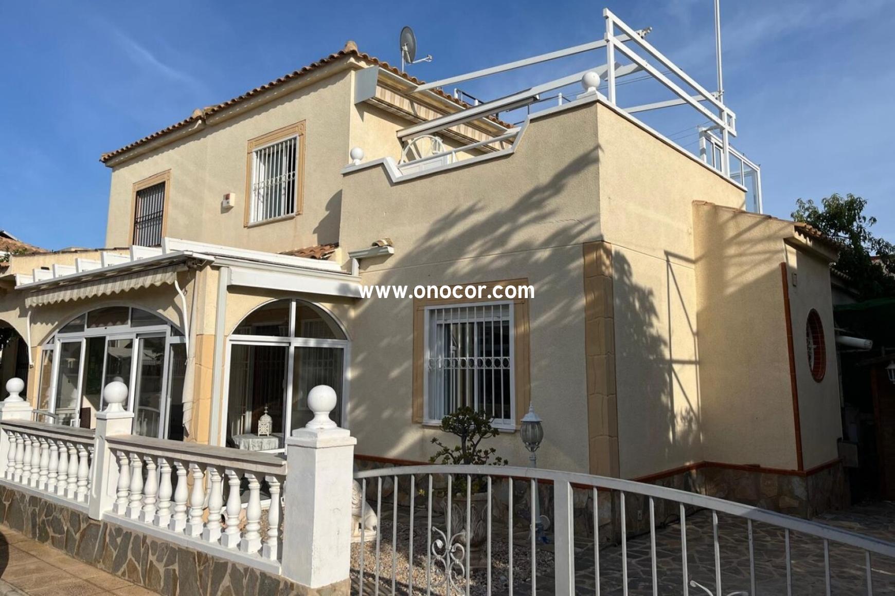 The upper floor offers a third bedroom, a light-filled conservatory, and a spacious terrace – perfect for relaxing.