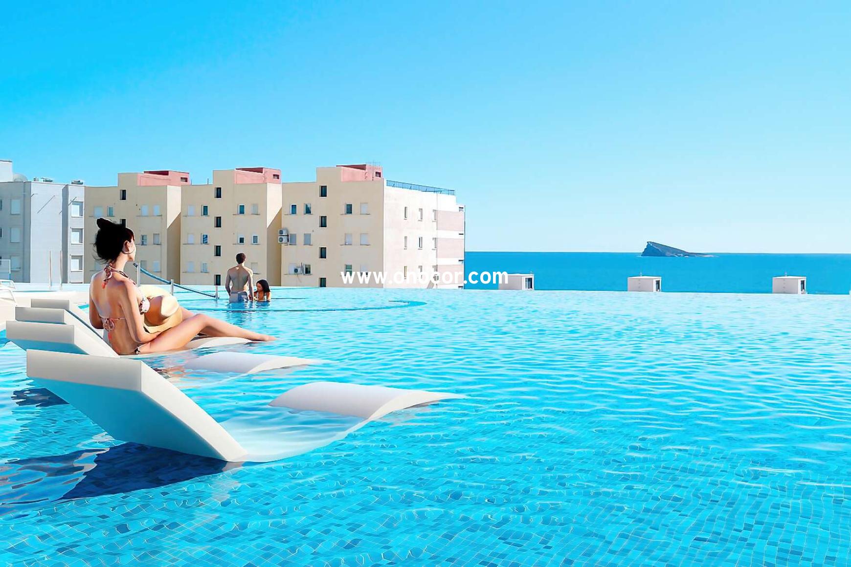 Sunset Sailors by TM is located in a privileged area of Poniente Beach, just 50 metres from the sea. The complex has a total of 286 apartments with 1, 2, 3 and 4 bedrooms, all with stunning sea views and spacious terraces, giving you the unique feeling of sailing at home. The communal areas of Sunset Sailors by TM complete this very special development. Swimming pools, one of which is heated, Jacuzzis, a chill-out area, a co-working room, a gym with panoramic views, a large sports area with paddle tennis, tennis and multi-sports court and even a cinema room are just some of the amenities you can enjoy when you choose Sunset Sailors by TM as your new home.